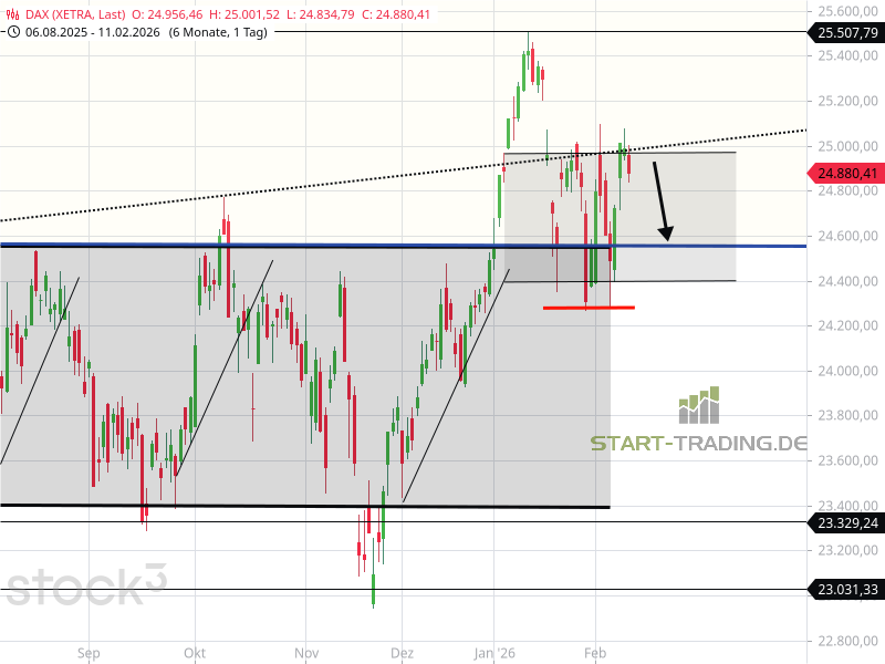 Am Aktienmarkt sind Aktien nicht mehr so anziehend, wie Anleger das aus früheren Zeiten kannten. Seitdem der DAX von Mitte November 2025 bis Mitte Januar eine fulminante Rallye bis 25.507 Punkte absolvierte, fehlen nun die Anschlusskäufer. Niemand beeilt sich, Wertpapiere zu kaufen. Seit Wochen nun klemmt der Index in einer Range fest und bewegt sich kaum. Das Warten auf eine Richtungsentscheidung geht weiter.