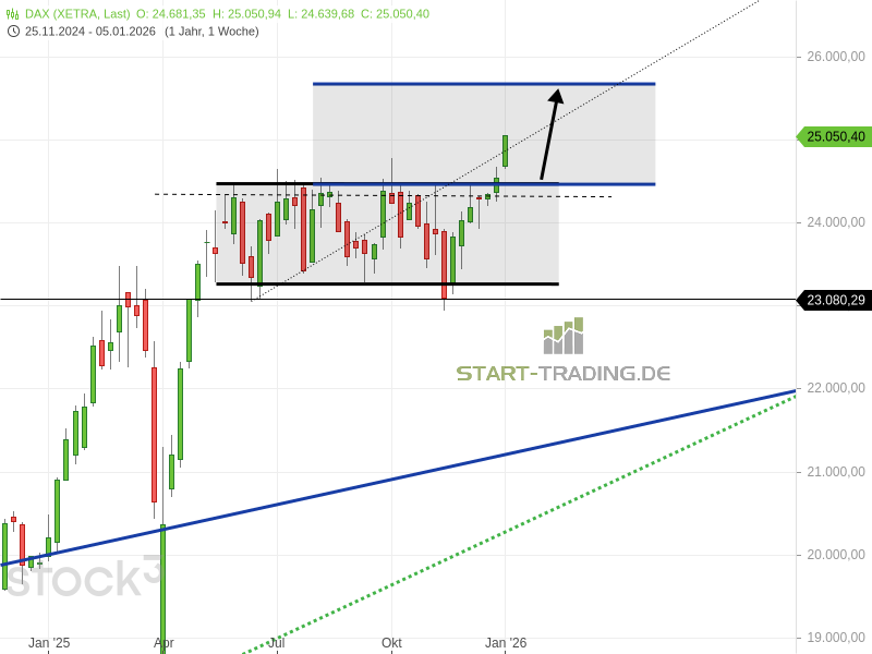 DAX, Wochenchart, Stand 25.050 Punkte