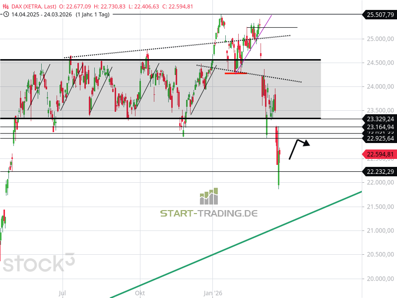 DAX, Tageschart, Stand 22.594 Punkte