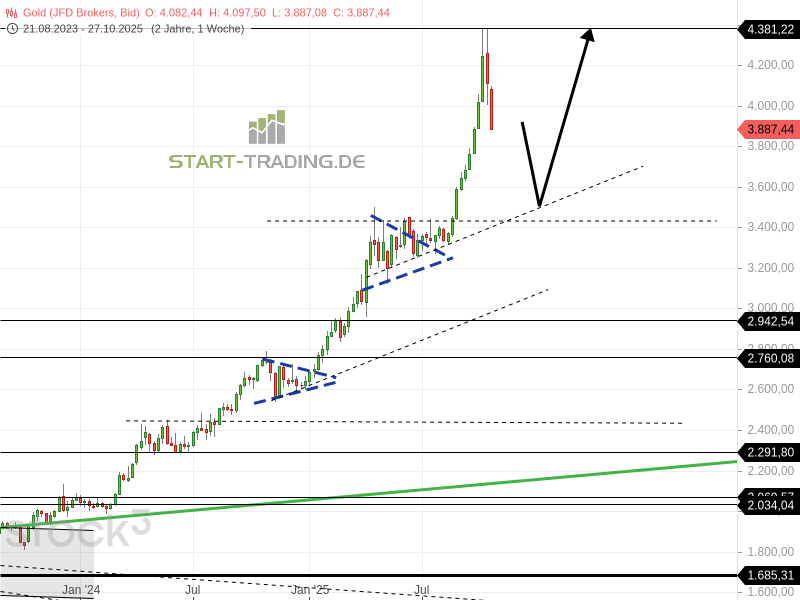 Der Goldpreis fällt unter die 4.000-$-Marke zurück und beginnt eine Korrekturphase. Sofort mehren sich die Meldungen, dass nun die Rallye dauerhaft vorbei sei. Manch ein Investor macht sich bereits Gedanken, ob er seine Bestände verkaufen sollte. Dabei ist eine Korrektur nach dem massiven Kursanstieg mehr als sinnvoll, um anschließend eine gesunde Rallyefortsetzung zu ermöglichen. Für den Moment heißt es: Ruhe bewahren.
