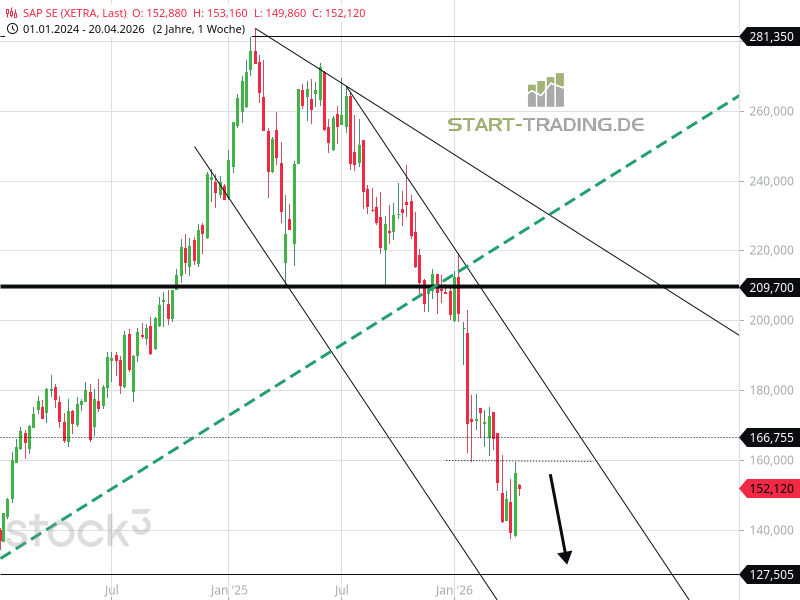 Doch die Abwärtsbewegung bei der SAP-Aktie ist noch unvollständig. Ein Kursziel bei 130 Euro steht aus. Dadurch ergibt sich die Möglichkeit eines finalen Rutsches, der nicht auszuschließen ist. Besonders unterhalb von 161 Euro ist die charttechnische Lage noch fragil.