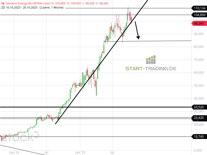 Die Siemens Energy-Aktie war lange Zeit der Liebling der Anleger an den Börsen. Kaum ein anderer Wert konnte dermaßen stark ansteigen und den Investoren solche Gewinne bescheren. Doch auch wenn diese goldene Zeit ewig anzudauern scheint – das Chartbild sendet deutliche Warnsignale. Die Siemens Energy-Aktie befindet sich auf der Kippe. Nur ein kleiner Schritt fehlt noch, damit der Aufwärtstrend als beendet gelten kann. Ein solcher Trendbruch wird unweigerlich Folgen haben.