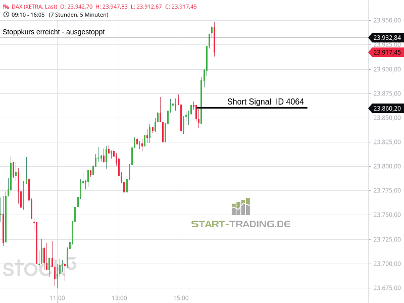 Signal ID 4064 von start-trading.de | 5 Nov., 2025 | Signal Signal-ID: 4064 Signal: DAX Short Stand: 23.860 Zeit: 04.11.2025 – 15:33 Uhr Stopp-Loss-Marke: 23.932 Verlust: 72 Punkte Wertung: Dieses Signal war erfolglos Ähnliche Artikel zu diesem Thema: Signal ID 3995 Signal ID 3916 Signal ID 3882 Signal ID 3879