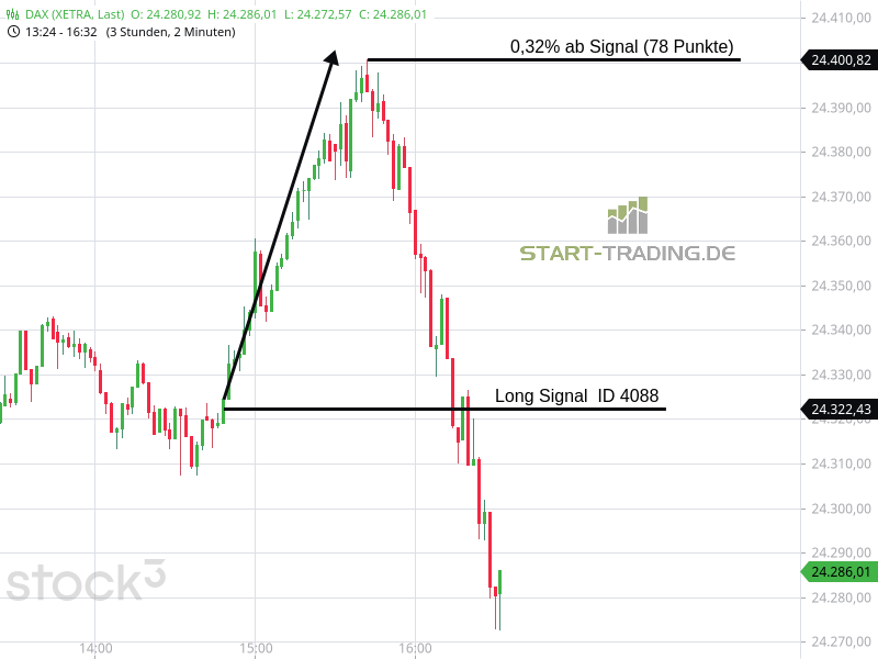 Signal ID 4088 von start-trading.de | 14 Dez., 2025 | Signal Signal-ID: 4088 Signal: DAX Long Stand: 24.322 Zeit: 12.12.2025 – 14:49 Uhr Mindestgewinn: 72 Punkte Maximal möglicher Gewinn: 78 Punkte Wertung: Dieses Signal war erfolgreich Wir freuen uns, auch Ihnen unsere DAX-Signale zur Verfügung zu stellen. Unser Service – Ihr Erfolg Ähnliche Artikel zu diesem Thema: Signal ID 4072 Signal ID 3991 Signal ID 3944 Signal ID 3940