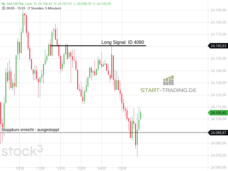 Signal ID 4090 von start-trading.de | 17 Dez., 2025 | Signal Signal-ID: 4090 Signal: DAX Long Stand: 24.160 Zeit: 16.12.2025 – 11:31 Uhr Stopp-Loss-Marke: 24.088 Verlust: 72 Punkte Wertung: Dieses Signal war erfolglos Ähnliche Artikel zu diesem Thema: Signal ID 4085 Signal ID 4071 Signal ID 4069 Signal ID 3957
