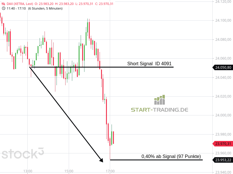Signal ID 4091 von start-trading.de | 18 Dez., 2025 | Signal Signal-ID: 4091 Signal: DAX Short Stand: 24.050 Zeit: 17.12.2025 – 13:10 Uhr Mindestgewinn: 72 Punkte Maximal möglicher Gewinn: 97 Punkte Wertung: Dieses Signal war erfolgreich Wir freuen uns, auch Ihnen unsere DAX-Signale zur Verfügung zu stellen. Unser Service – Ihr Erfolg Ähnliche Artikel zu diesem Thema: Signal ID 4051 Signal ID 3937 Signal ID 3921 Signal ID 2025