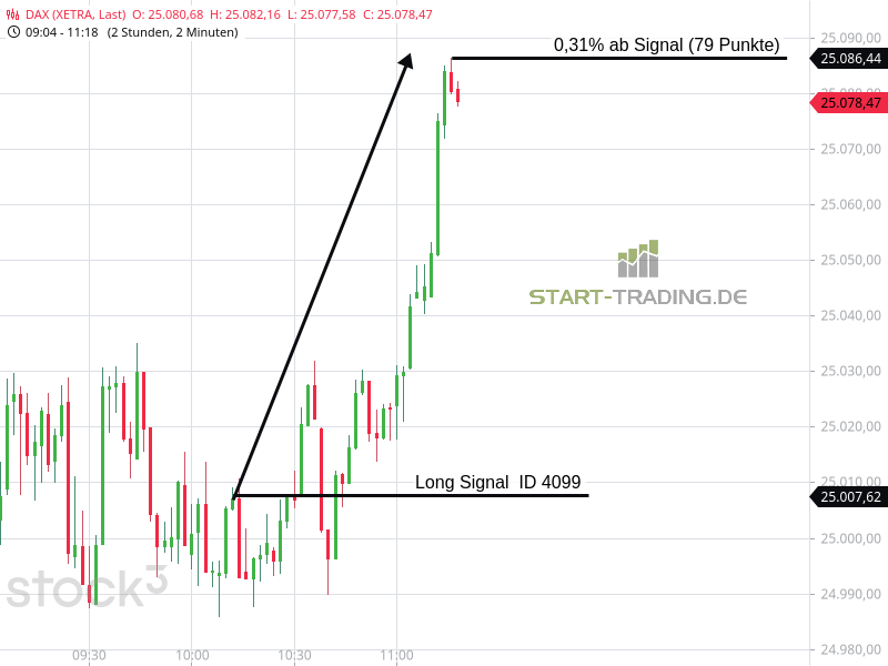 Signal ID 4099 von start-trading.de | 7 Jan., 2026 | Signal Signal-ID: 4099 Signal: DAX Long Stand: 25.007 Zeit: 07.01.2026 – 10:12 Uhr Mindestgewinn: 75 Punkte Maximal möglicher Gewinn: 79 Punkte Wertung: Dieses Signal war erfolgreich Wir freuen uns, auch Ihnen unsere DAX-Signale zur Verfügung zu stellen. Unser Service – Ihr Erfolg Ähnliche Artikel zu diesem Thema: Signal ID 4098 Signal ID 4097 Signal ID 4096 Signal ID 2026