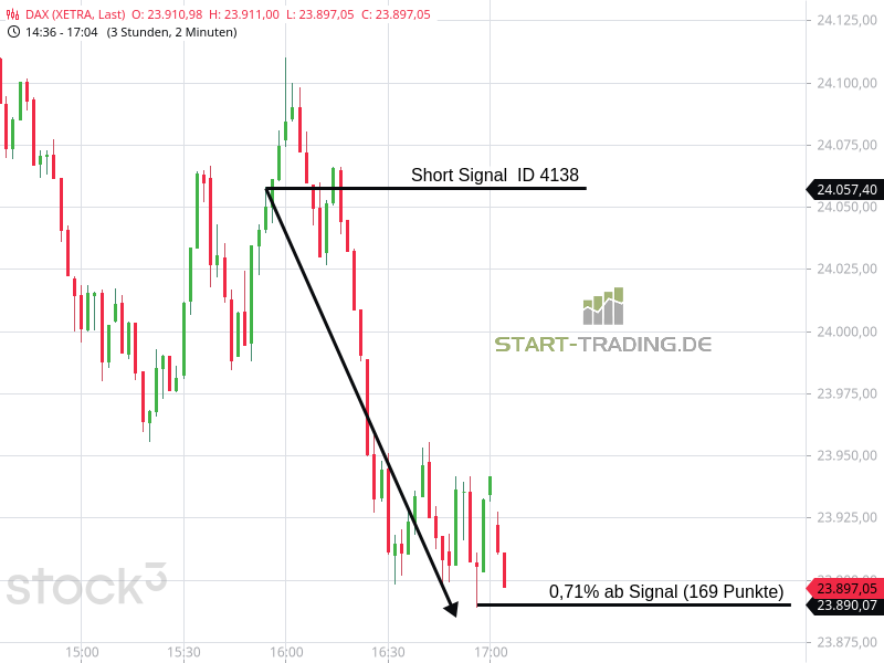 Signal ID 4138 von start-trading.de | 5 März, 2026 | Signal Signal-ID: 4138 Signal: DAX Short Stand: 24.057 Zeit: 05.03.2026 – 15:54 Uhr Mindestgewinn: 72 Punkte Maximal möglicher Gewinn: 169 Punkte Wertung: Dieses Signal war erfolgreich Wir freuen uns, auch Ihnen unsere DAX-Signale zur Verfügung zu stellen. Unser Service – Ihr Erfolg Ähnliche Artikel zu diesem Thema: Signal ID 4107 Signal ID 4103 Signal ID 4098 Signal ID 2026