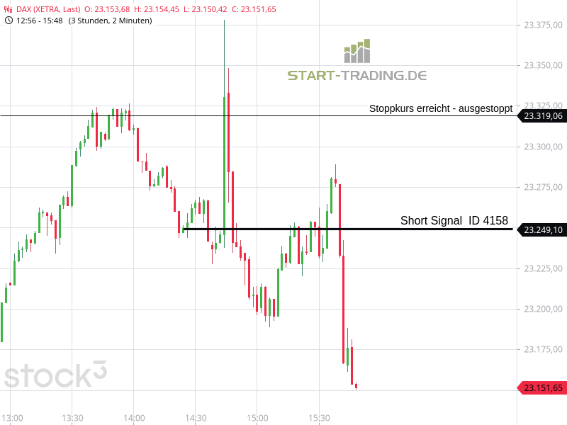 Signal ID 4158 von start-trading.de | 1 Apr., 2026 | Signal Signal-ID: 4158 Signal: DAX Short Stand: 23.249 Zeit: 01.04.2026 – 14:23 Uhr Verlust: 70 Punkte Wertung: Dieses Signal war erfolglos Ähnliche Artikel zu diesem Thema: Signal ID 4147 Signal ID 4146 Signal ID 4134 Signal ID 4111